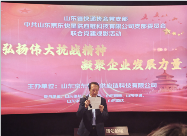 近日,由山东省快递协会副会长单位山东京东快星供应链科技有限公司党支委主办,联合省快递协会、德邦,顺丰、极兔、圆通,中通,申通,韵达等省内品牌快递企业党支委、党支部,开展“红色观影忆初心 砥砺奋进担使命” 联合党建活动,近200名行业党员、业务骨干及快递小哥代表齐聚影院,在光影中重温红色记忆,凝聚行业发展合力。